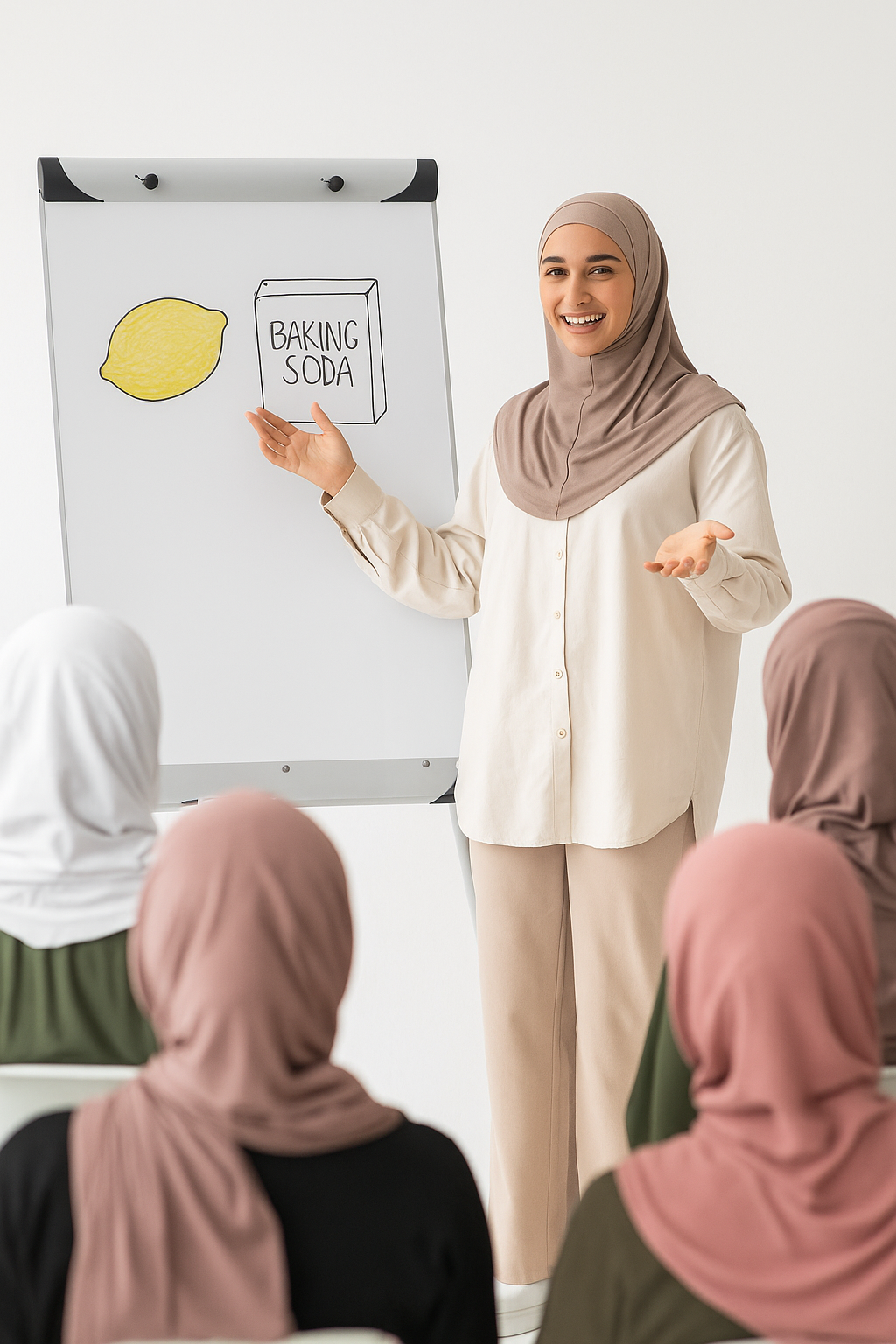 في هذا التدريب العملي ستتعلمين خطوة بخطوة كيف تستبدلين اخطر المنتجات التجارية المستخدمة في التنظيف اليومي بوصفات امنة تعتمد على الخل الابيض وبيكربونات الصوديوم وعصير الليمون والزيوت الطبيعية